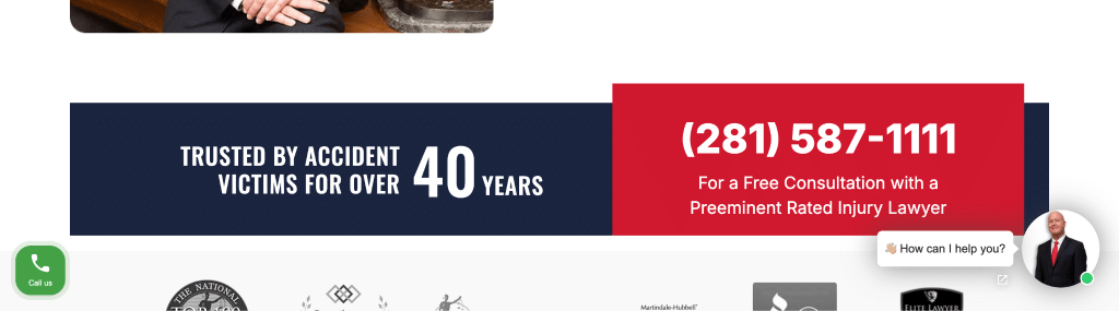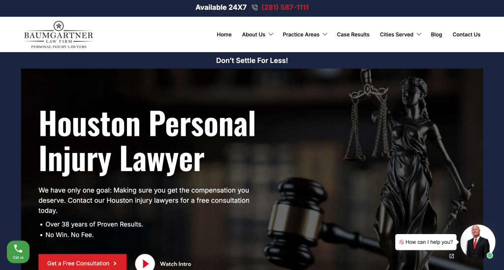 A good example of this is the Baumgartner Law Firm. Their CTA is “Get a Free Consultation,” and it appears with the same wording and design four times on just their homepage.