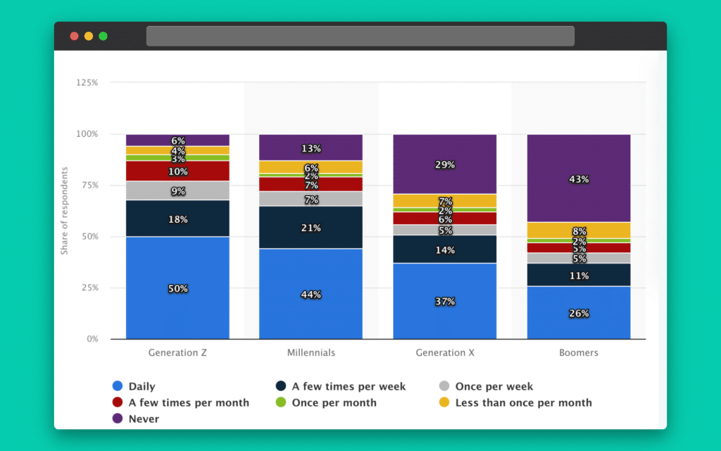 Social media is where people spend significant time daily. Just look at this graph that breaks down how often each generation uses it: