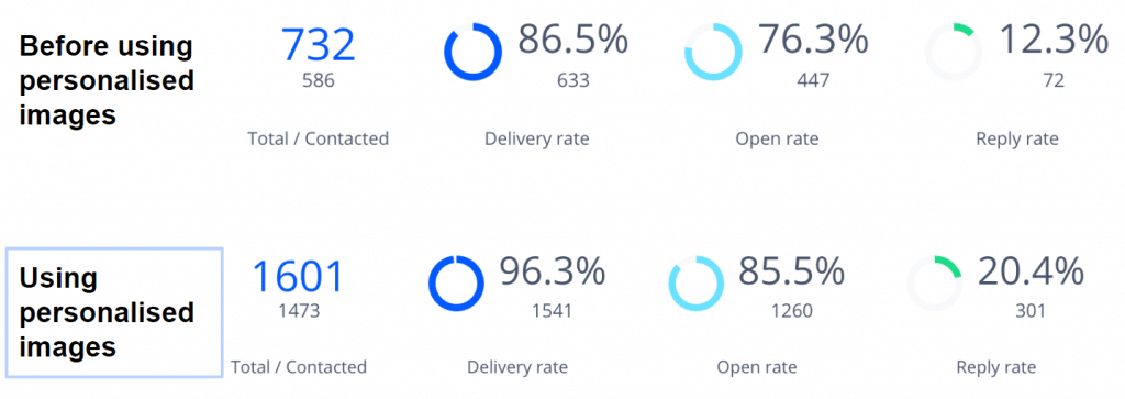 Reply.io then did some additional research to find out how effective dynamic, personalized images are at each stage of email campaigns.