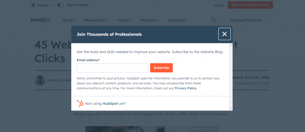 Here’s a good example on HubSpot’s website: