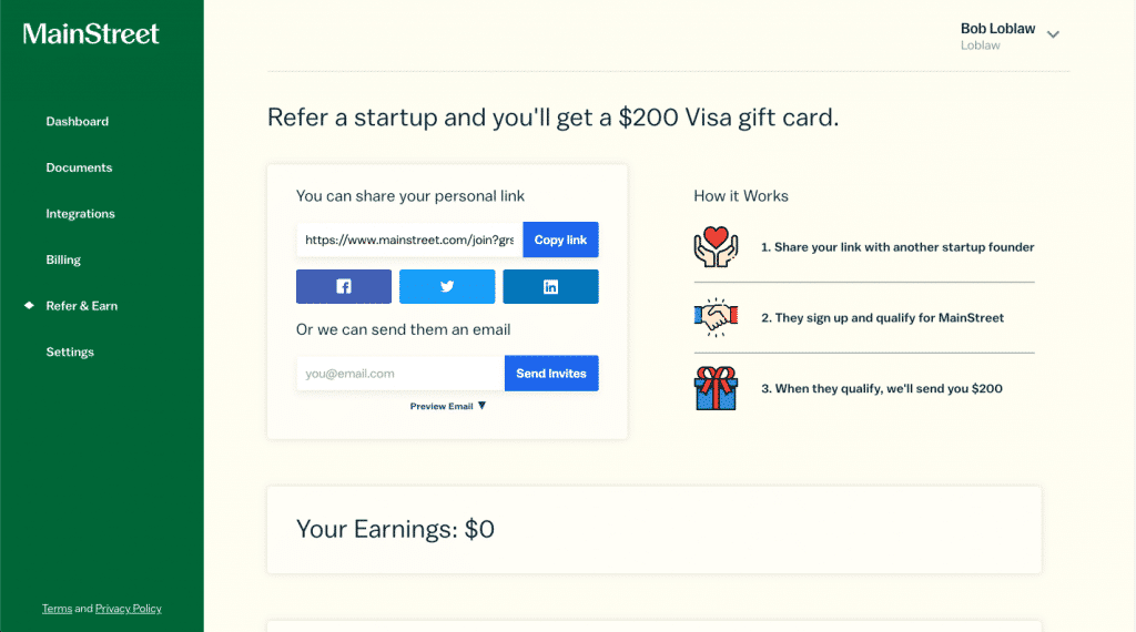 The company gives customers a $200 Visa gift card for every referral. The customer can easily find their personal link and manage the referral by using an intuitive interface on their account: