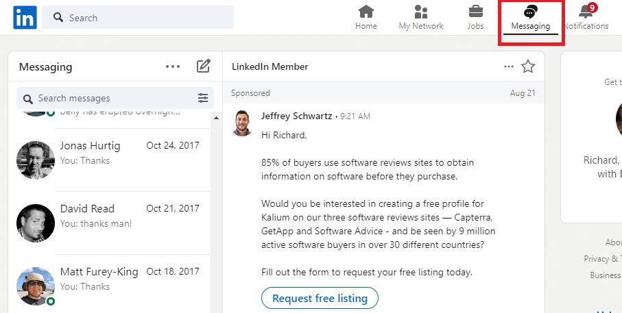 Sending a cold message on LinkedIn is usually done by using the platform’s built-in messenger system, InMail.