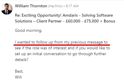 Directing them to your profile or case study piques their curiosity. It allows them to find out for themselves who you are and what value you can offer them.