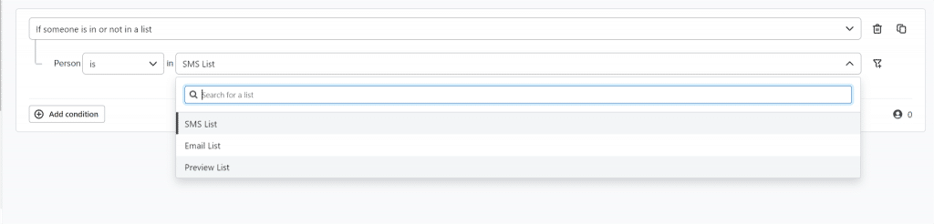 If you want to focus on a smaller group of people within a list or combine two or more lists, you’ll need to check whether someone is part of a specific list. This is the condition you would use in that case.