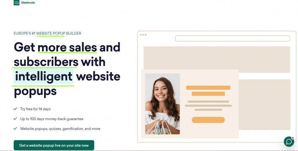 Screenshot taken on Sleeknote