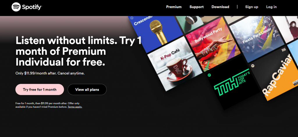 The digital music service dynamically adjusts content on its landing pages depending on the user’s location. To illustrate the point, we’ll look at the examples designed for the citizens of the Netherlands and the United States.