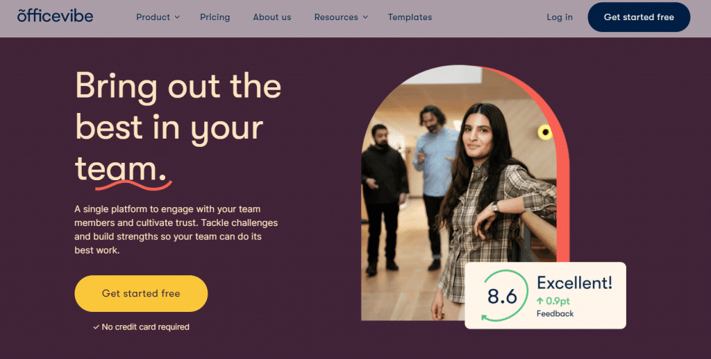 - Benefit-driven copy: The text above the CTA, “Bring out the best in your team,” speaks directly to the desired outcome for the visitor. It suggests this platform can improve team performance, which is a compelling benefit that encourages action.