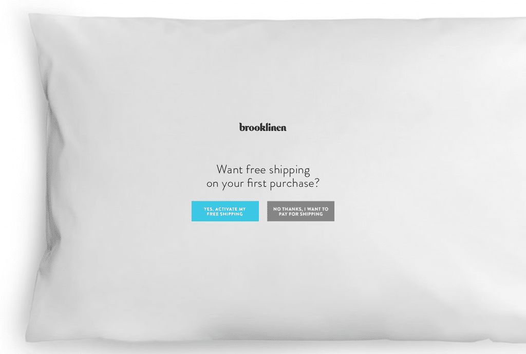 Brooklinen offers free shipping on the first buy when you sign up. If you don’t want to sign up, you have to click a button that says you’re okay with paying for shipping. Most people don’t want to pay extra for shipping, so it’s a clever way to get them to sign up.