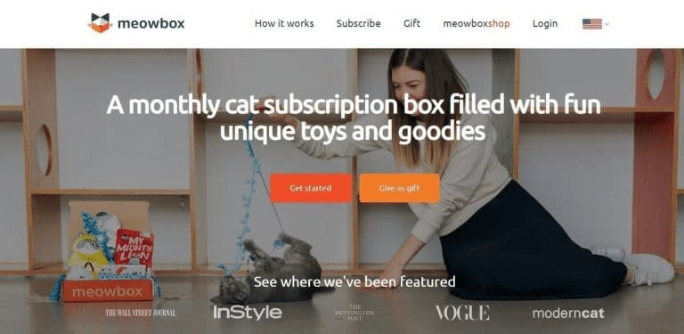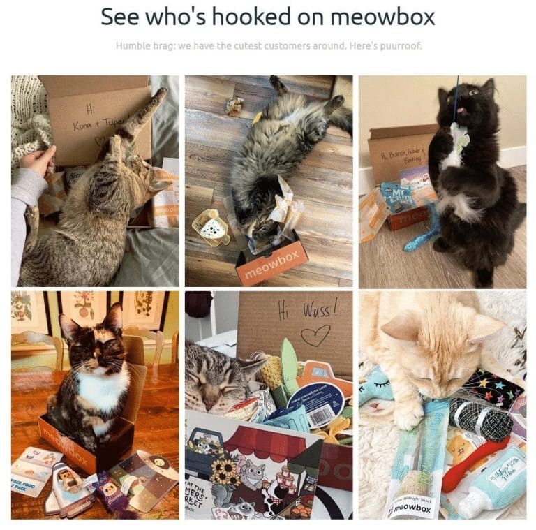 For example, in the meowbox example above, scrolling down the webpage brings you to incredible photos of real cats enjoying their meowbox treats.