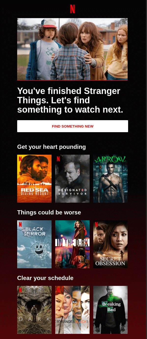 Through automation, Netflix can give its users personalized recommendations on what content to watch next: