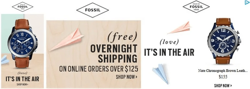 Here is an example of a retargeting advert run by Fossil that shows the visitors who had viewed the brand’s products on its website and offers them free shipping to get them to return: