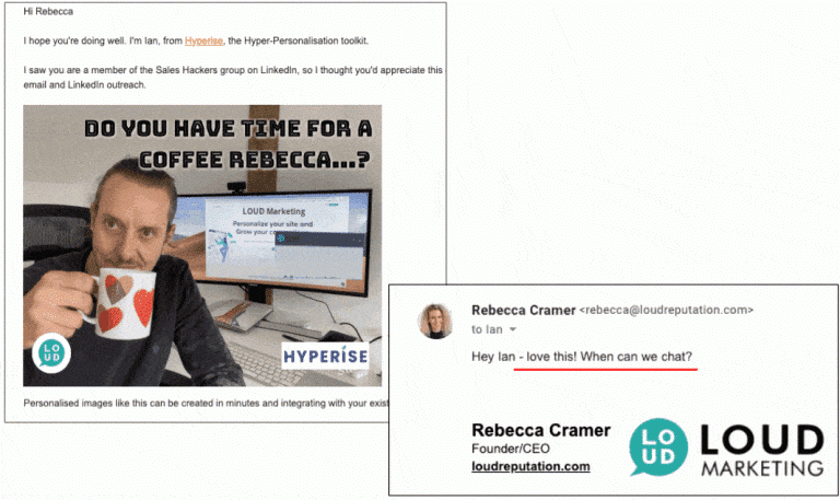 This is where tools like Hyperise are useful to help you create and send personalized images, GIFs, and videos to include in your outreach emails to prospects.