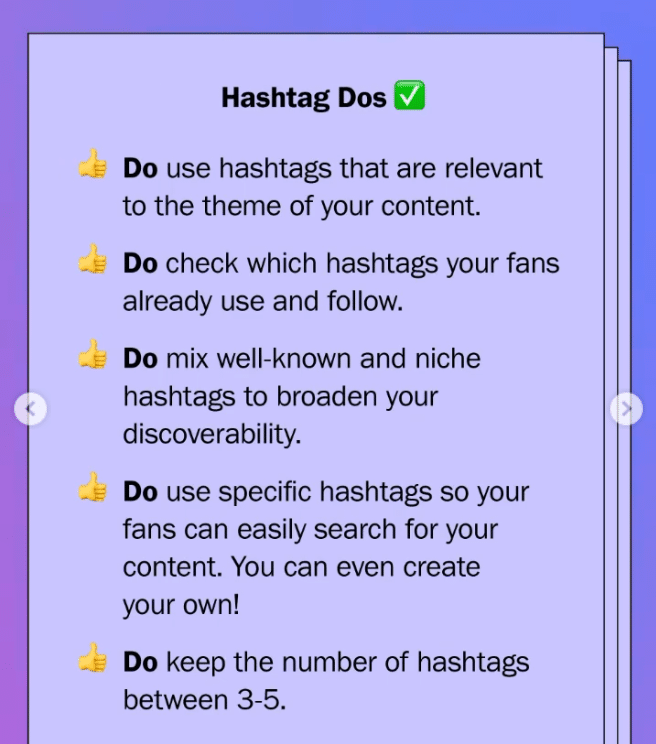 Keep testing combinations of trending, branded and niche hashtags to determine what resonates best with your followers and the Instagram community.